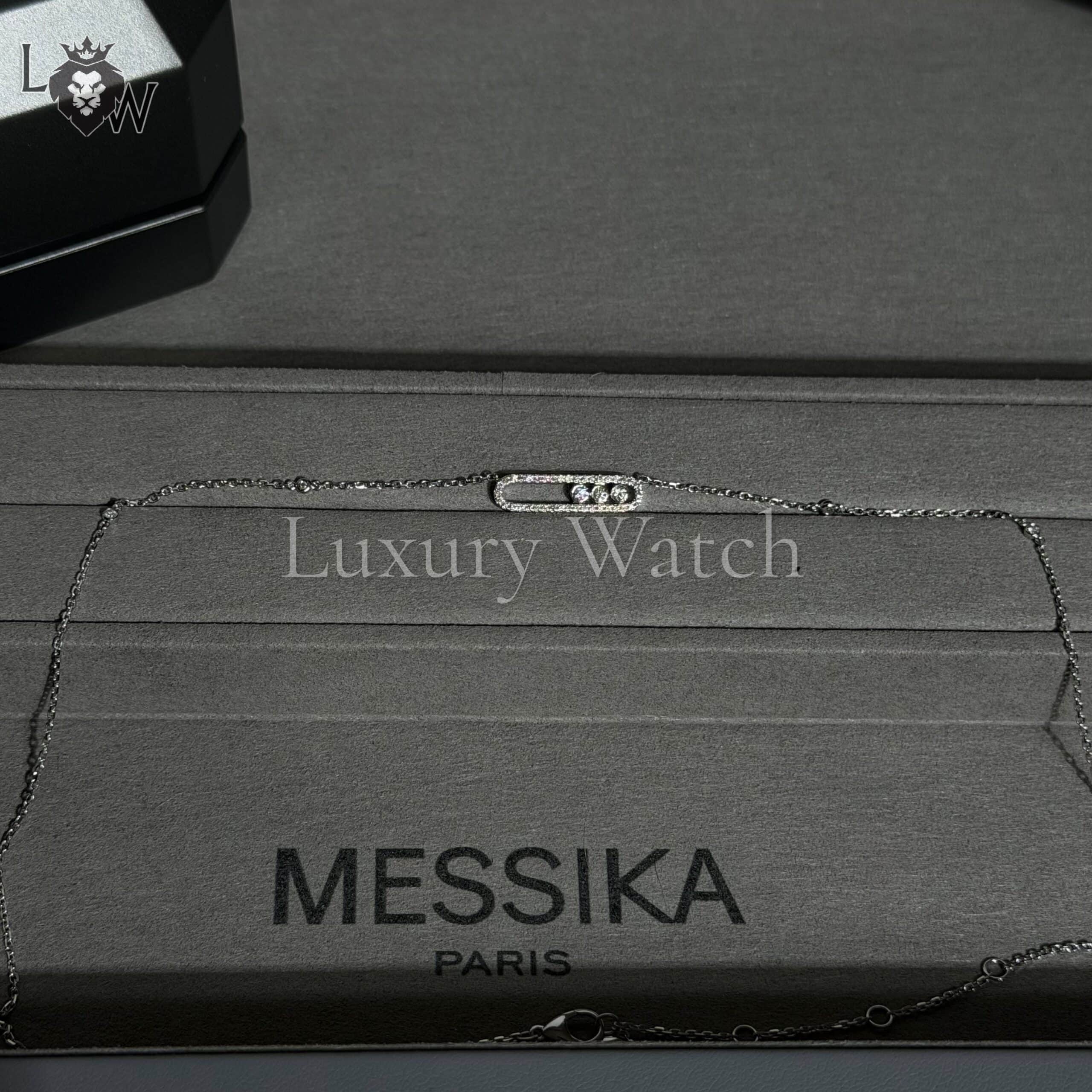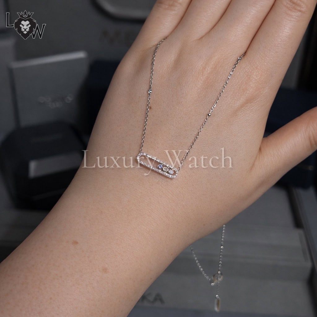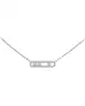 Откройте для себя колье Baby Move из 18-каратного белого золота с бриллиантами паве. Это роскошное колье, полностью изготовленное вручную, с изяществом ляжет на шею. Любая женщина, которая ищет модное бриллиантовое украшение, удобное для ношения, полюбит его: три движущихся бриллианта, символизирующие любовь вчерашнего, сегодняшнего и завтрашнего дня, сияют в соответствии с движениями. Тонкая оправа отражает чистоту камней. Белое золото отражает свет, подчеркивая чистоту бриллиантов. Шикарная деталь этого колье из белого золота с бриллиантами: украшающие бриллианты на цепочке.