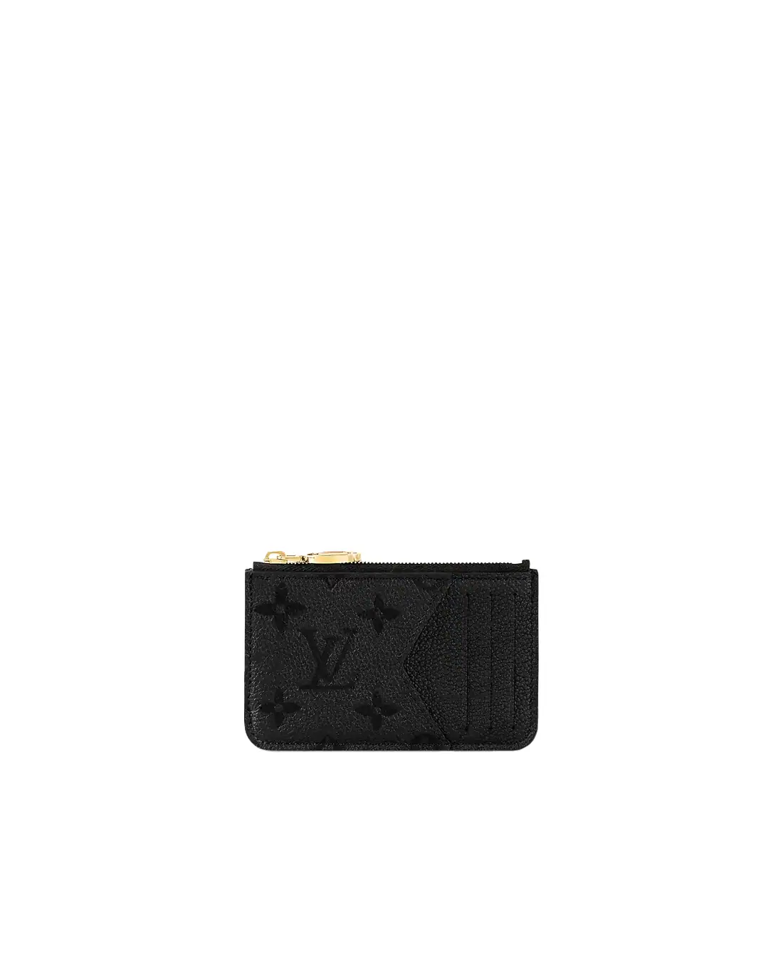 Этот выпуск держателя карт Romy предлагается в тисненой коже Monogram Empreinte. Помимо карт, этот элегантный и универсальный предмет вмещает наличные, монеты или чеки в застегивающемся на молнию, складчатом мешочке, украшенном LV Circle pull из металла с золотистым покрытием.