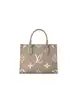 Сумка-тоут Onthego PM, вдохновленная знаменитой сумкой Sac Plat Louis Vuitton 1968 года, выполнена из кожи Monogram Empreinte с тиснением в виде двухцветного узора Monogram Medium. Эта уменьшенная версия оригинальной сумки Onthego вмещает предметы первой необходимости, такие как iPad Mini. Шарнирные верхние ручки и регулируемый съемный ремень предлагают различные варианты ношения.