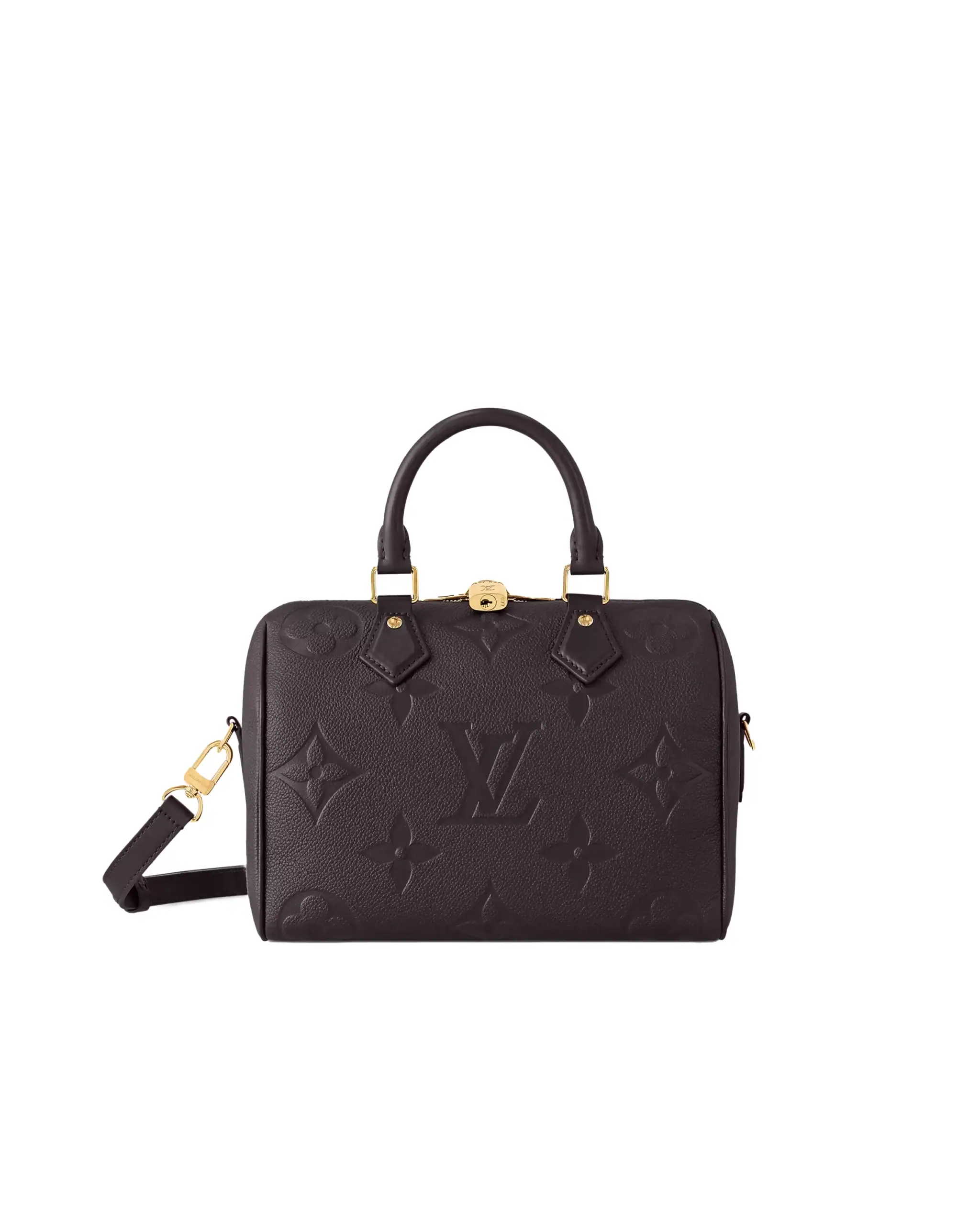 This seasonal take on the iconic Speedy Bandoulière 25 features the House’s Monogram Empreinte leather in a versatile chocolate colorway. It is adorned with gold-toned hardware and features a signature padlock to symbolize the House’s heritage and savoir-faire. The compact design fits everyday items, including makeup essentials.
